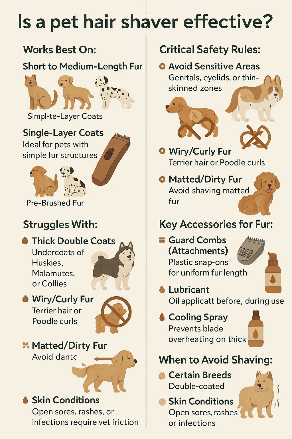 Ja, a Haustierhaarrasierer (Auch PET -Clippers oder Trimmer genannt) ist speziell für die Arbeit von Tierfell entwickelt, aber die Wirksamkeit hängt von Pelztyp, Werkzeugqualität und Technik ab. Unten finden Sie eine detaillierte Auseinandersetzung: