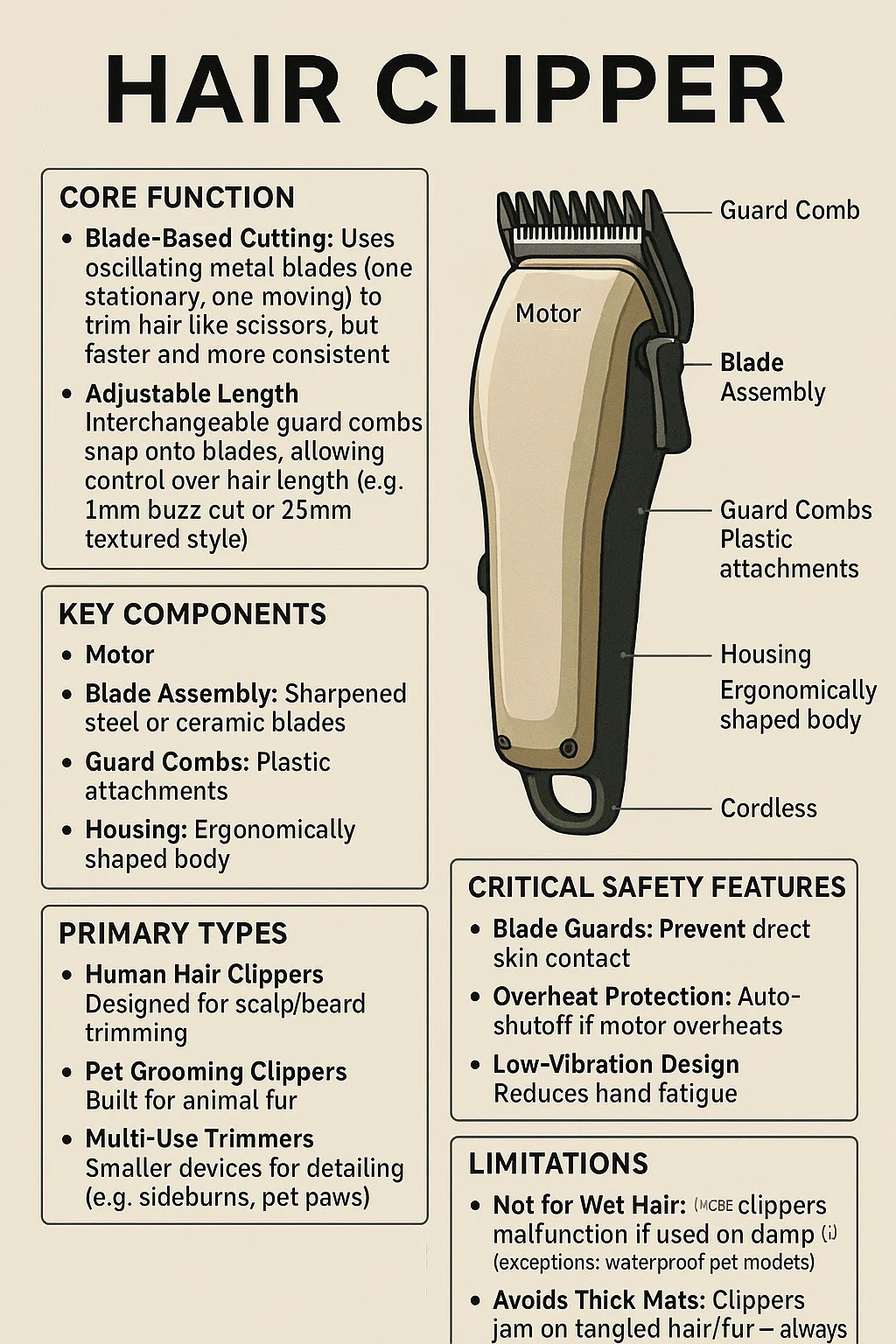 A Haarschneider ist ein elektrisches Pflegewerkzeug, mit dem Haare effizient und gleichmäßig geschnitten wurden. Hier ist eine detaillierte Aufschlüsselung seiner Kernfunktionen und -verwendungen:
